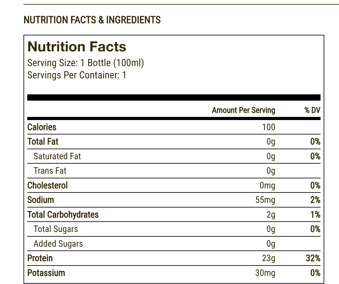 “unlike any other protein you’ve ever had, It’s a protein shot containing 23 g of complete protein in a 3 oz bottle…”