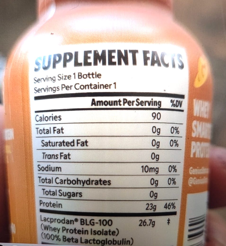 The math isn’t mathing regarding the claim of “absolutely nothing like it in the world until now.” It’s completely fair to find a business opportunity with a brand you love or be approached by one that may be struggling (I don’t presume to know the nature of connection, only that it seems there is one). But claiming there was nothing like it before is not, in my opinion, transparent. And honestly, if it were just this, I’d be rolling my eyes and not writing about it, because, while expensive, Genius Shot delivered a whack of high-quality protein for 90 calories in 3 ounces.